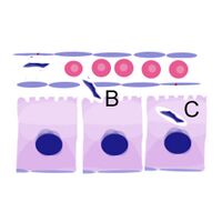 The sporozoites that have entered the blood then pass through the blood vessel and into the cells of the liver (B). They may pass through multiple cells but then remain in a single liver cell (C).