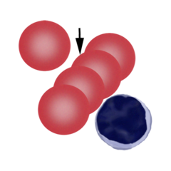 Long or short columns of “stacked” erythrocytes: the cells form a “cup-like” structure so that each successive cell fits into the concave surface of the cell beneath.